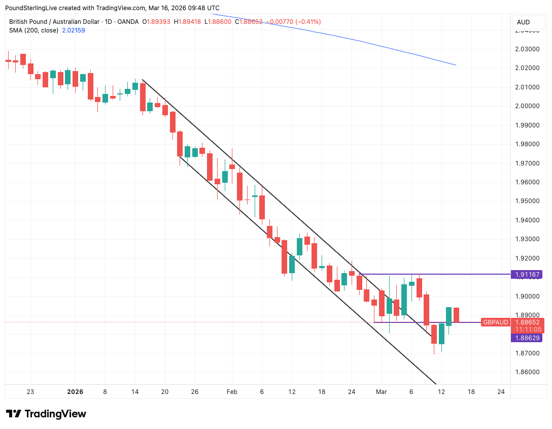 That dynamic is etched into a GBP/AUD daily chart that shows a clear downward-sloping channel for the exchange rate. Sure, the pair has recently consolidated around 1.8860, but it's hard to look at such an image and be anything but bearish.
