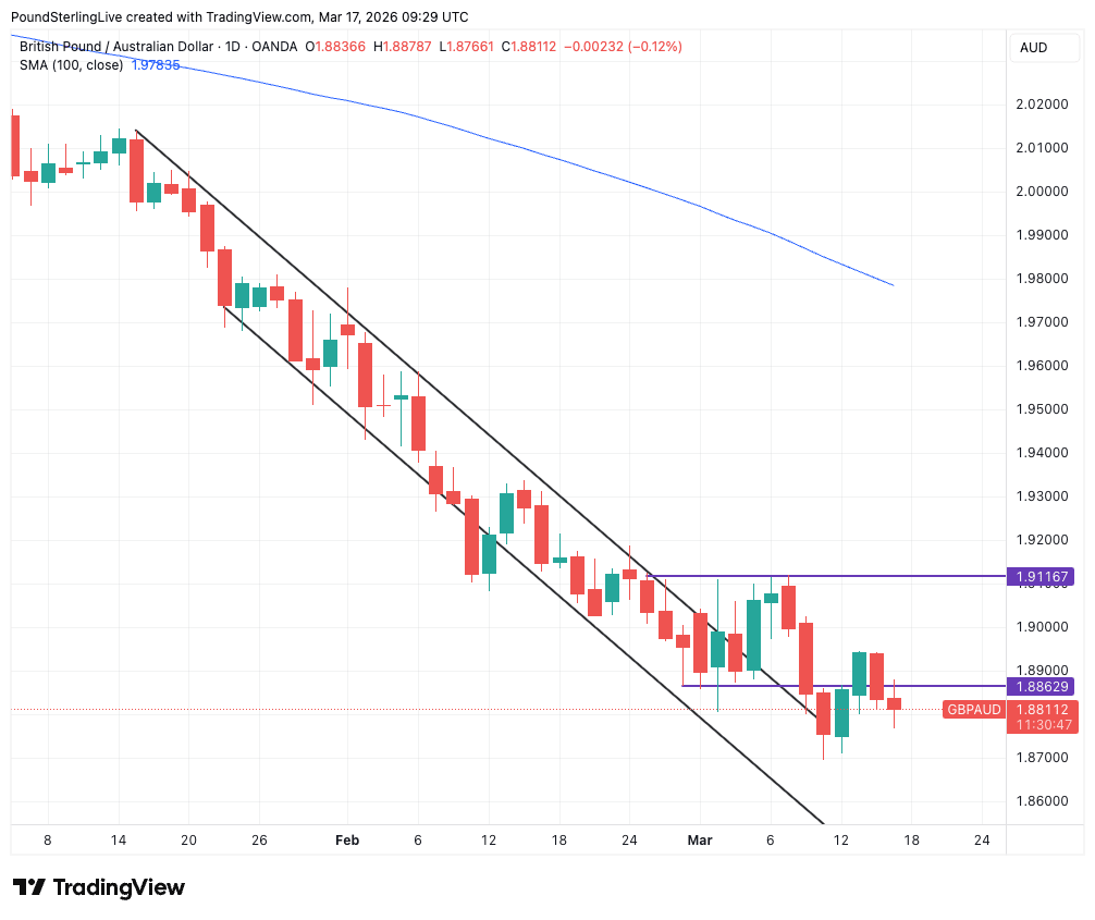 GBP/AUD drops to 1.8816, EUR/AUD falls to 1.6254 and AUD/USD rises to 0.7085.