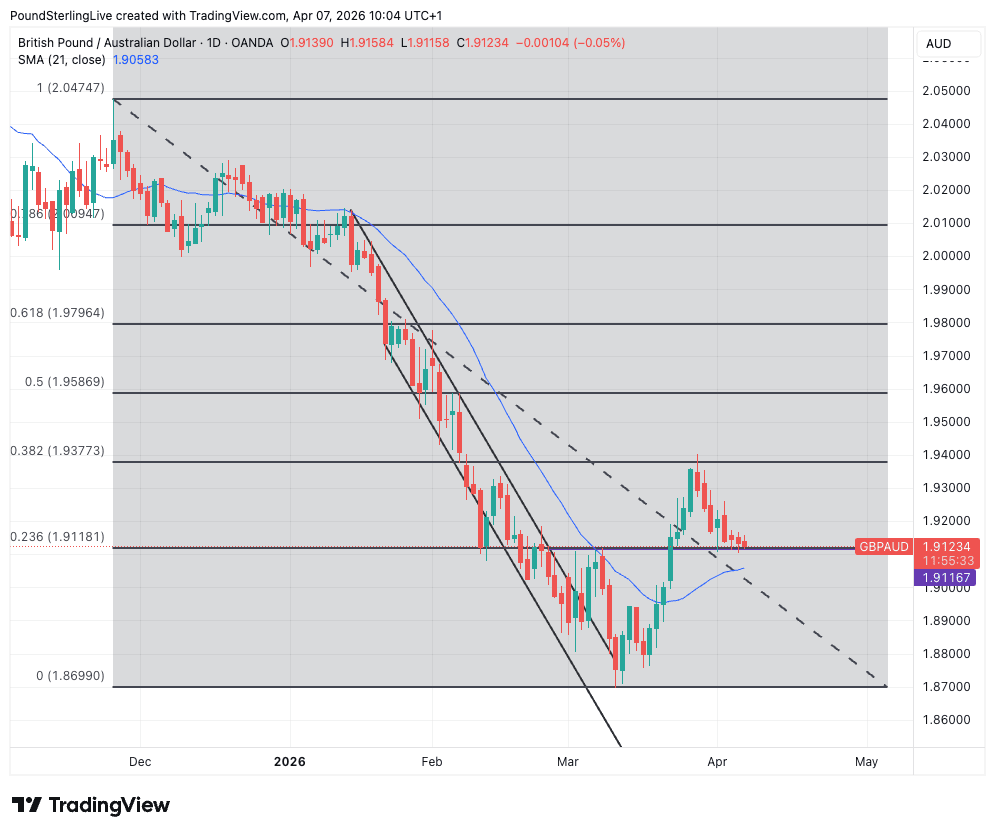 Hopes of de-escalation have been apparent for a few days now and explains why GBP/AUD peaked at 1.94 on March 27, but has since retraced to 1.9136.