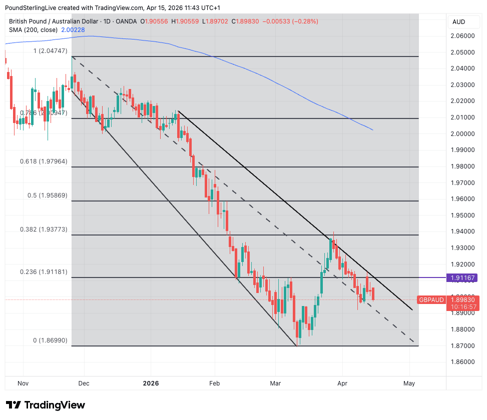 GBP/AUD fell to 1.8699 in February before the war in the Middle East sparked a recovery back to 1.94.