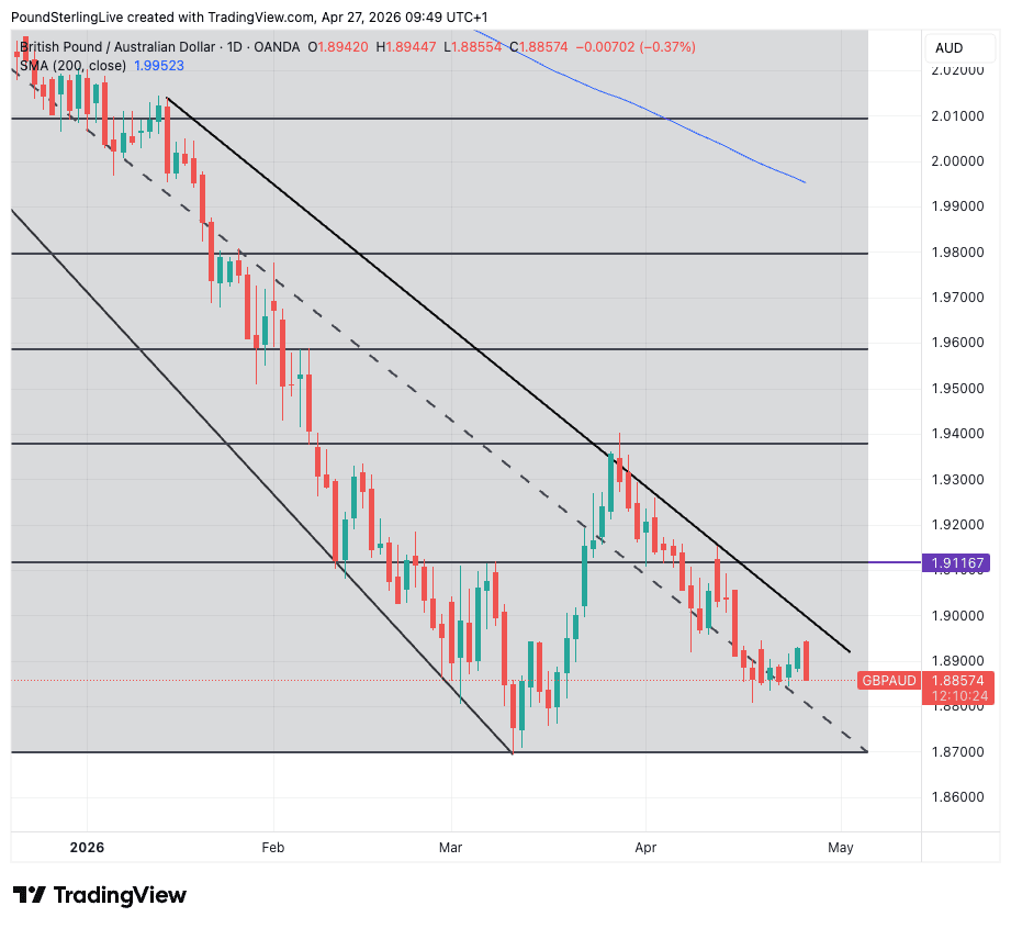 The pound-Australian dollar exchange rate is firmly locked onto 1.87, a level it should hit by at least mid-May, if not sooner.