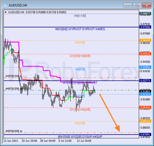 "Australian Dollar rebounded from the daily Super Trend twice; the bears were also supported by the 4/8 level. If the market is able to keep the price below the 3/8 level, the pair will continue falling down towards the 0/8 one."