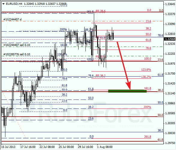 "Euro is being corrected; the price is moving at the level of 78.6% again. If the bears are able to rebound from this level, the market will continue moving downwards. The target will be in the area between the levels of 161.8% and 38.2%."