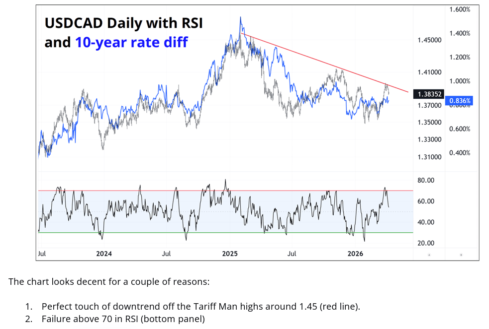 Brent Donnelly at Spectra Markets says the current setup points to downside in USD/CAD, particularly if the macro backdrop of firm oil prices and resilient equities holds.