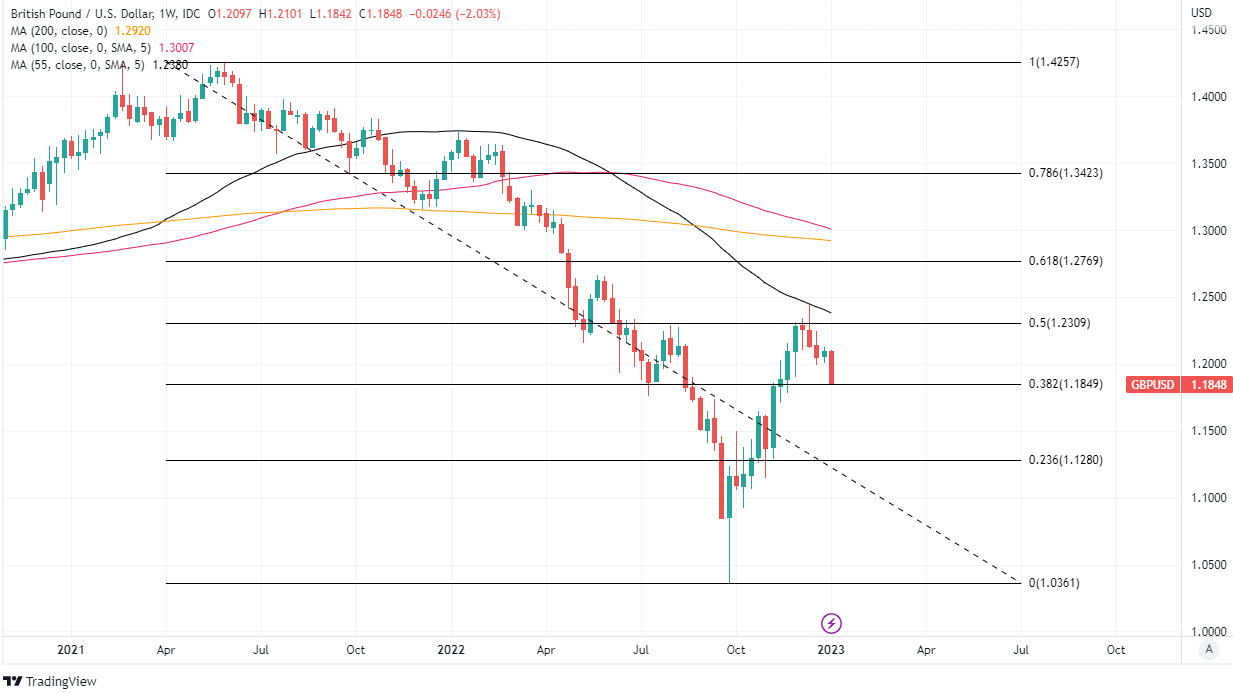 The Pound fell notably against a broadly stronger Dollar this week in price action that has taken Sterling back below 1.19 and seemingly invited a test of nearby technical support around 1.18 on the charts, although some analysts say losses as far as 1.1650 are also a possibility.