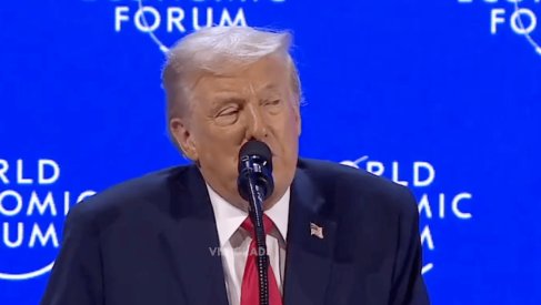 His address referenced a fall in stock markets in response to rising tensions over Greenland, to which he said the "stock market is going to be doubled."