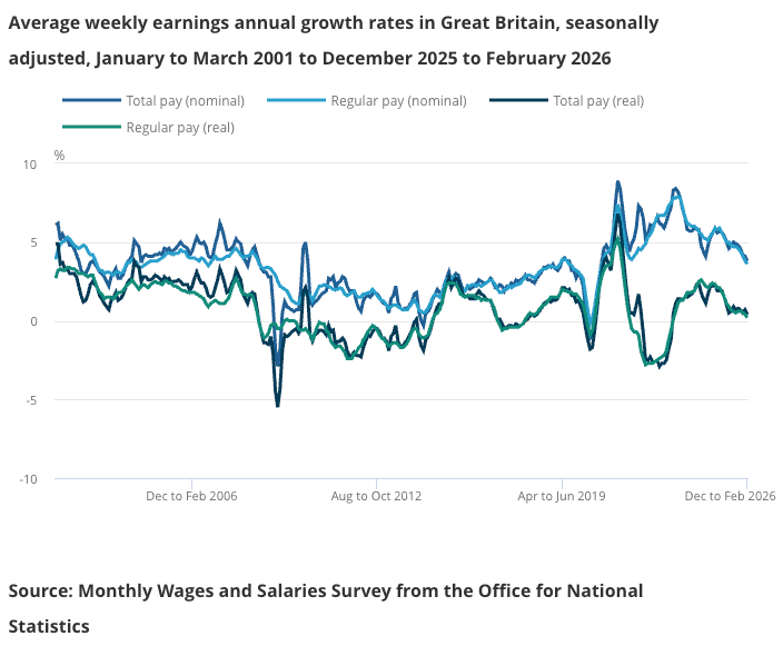Despite the headline unemployment rate falling, more timely HMRC data on full-time employment was at -11k in March, while February's figure was revised from +20k to -6k.
