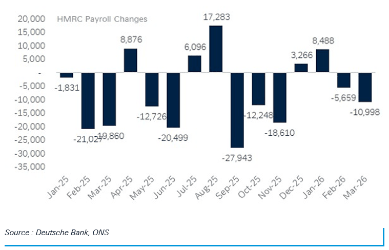 What makes the data all the more surprising is that HMRC's measure of payrolled employees fell by some 11K in March and 6K in February.