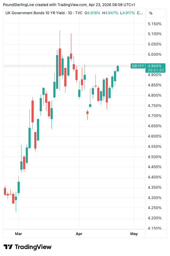 And, we're seeing a sizeable rise in UK debt costs on Thursday: UK bond yields have risen, with the ten-year rising to 4.198%, its highest level in two weeks. Global bond yields are also rising, but the UK's are rising by more; perhaps a sign that lenders to the UK government want greater compensation for holding their debt.