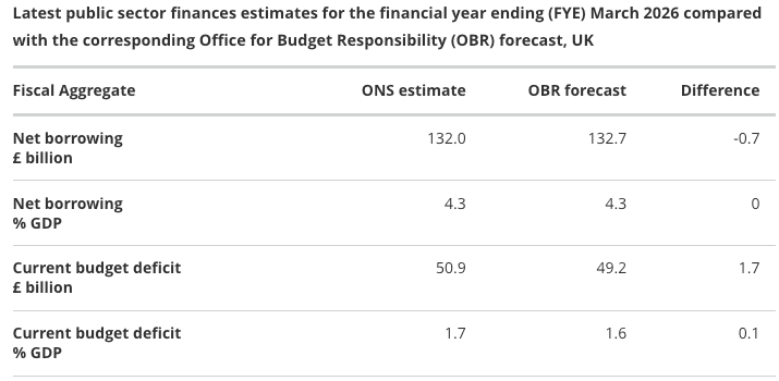 These are the top-line takeaways from Thursday's public sector borrowing data that showed £12.6BN was borrowed in March.