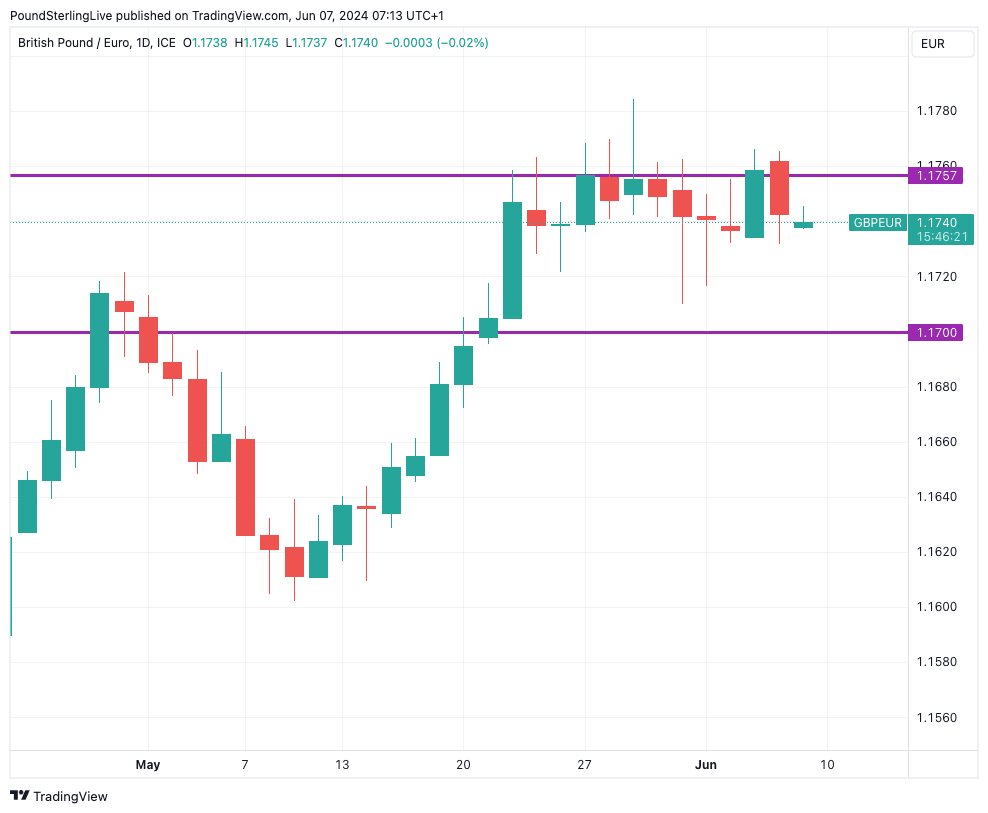 The Pound to Euro exchange rate's upside progress has been blocked by the European Central Bank's warning that there are no further interest rate cuts pencilled into the diary.