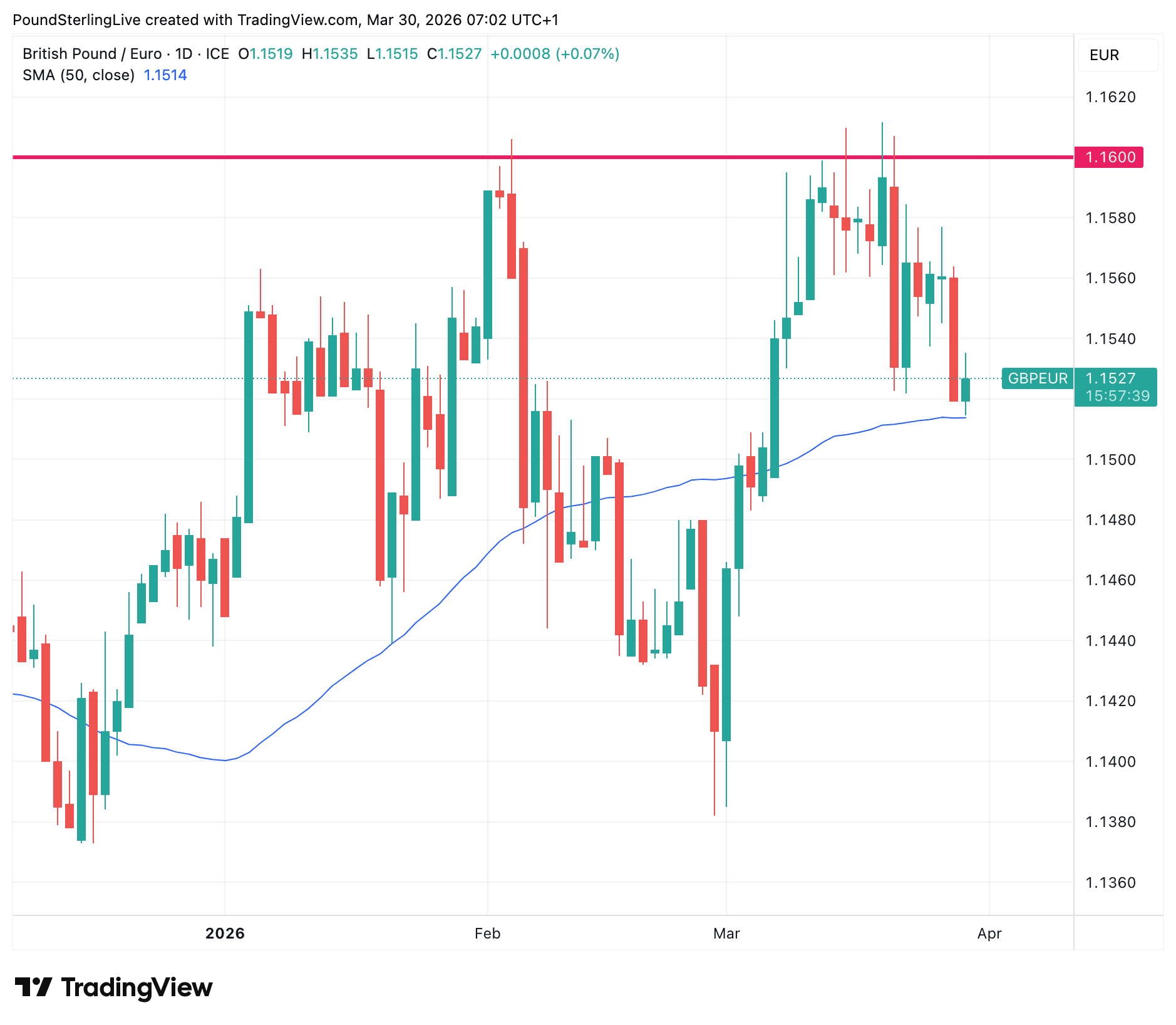 Provided bond markets settle - and that's a big 'if' considering the war in the Middle East isn't any closer to ending - then we would look for GBP/EUR to drif closer to 1.15.