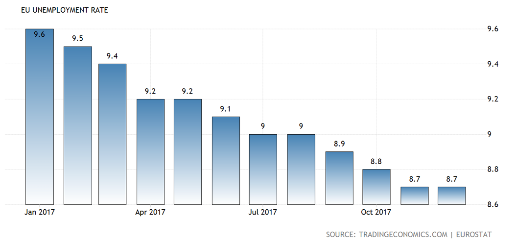 For Euro -naysayers, the Eurozone's relatively high unemployment rate of 8.7% indicates low inflationary pressures and perennially low-interest rates.