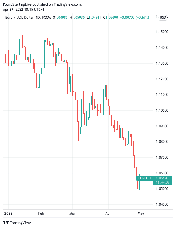 Expectations that the Euro and Dollar could reach parity have only grown after the exchange rate fell by nearly 2.0% in the week ending April 29 and is remains soft at the time of writing on Tuesday May 03.