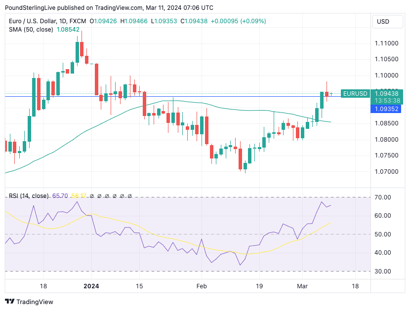 The key events for the Euro-Dollar in the coming week will be the release of February inflation figures on Tuesday and retail sales on Thursday.