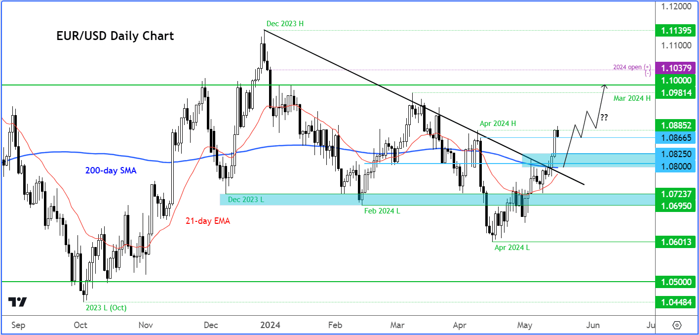 Unsurprisingly, the EUR/USD has fallen back amid profit-taking after Wednesday’s data-driven rally. But with several key resistance levels broken, the path of least resistance remains to the upside.