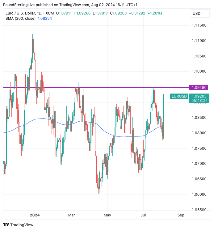 The rally could ultimately test 1.10 and then the December 2023 highs at 1.1139, but that peak would be a story for a multi-week timeframe.