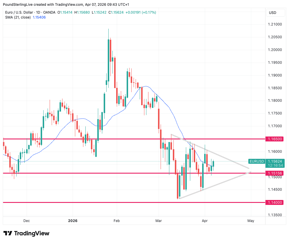 The pair is at 1.156 on Tuesday, which puts it approximately in the middle of its Iran war range: 1.1650 is at the top and 1.14 at the bottom.