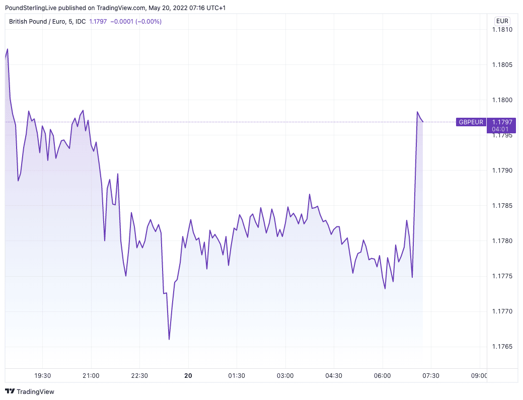 Above: GBP/EUR at five minute intervals showing post-retail sales release reaction.