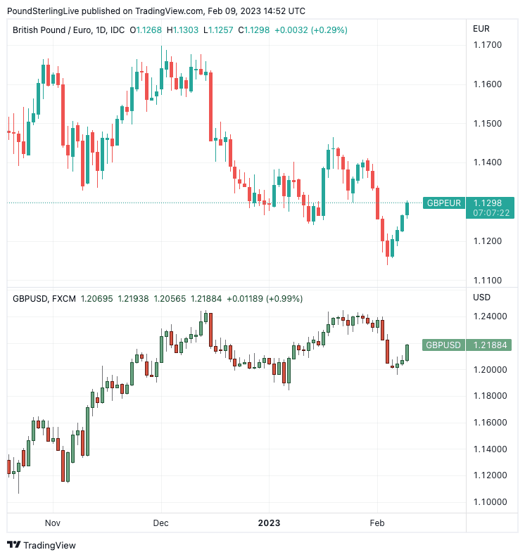 The Pound to Euro exchange rate rose above 1.13 again for the first time in a week while the Pound to Dollar exchange rate rose to 1.2150, levels last seen ahead of the fall that followed last week's Bank of England policy update.