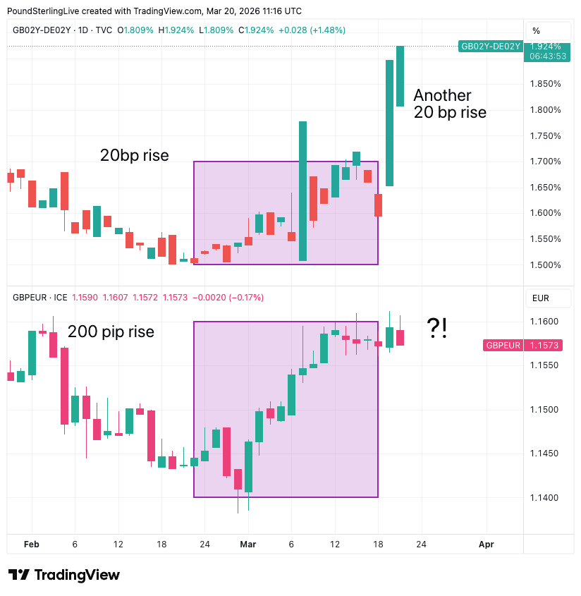 Since March 15, we've had another 20 basis point rise in that differential, and nothing to show for it in the GBP/EUR exchange rate.