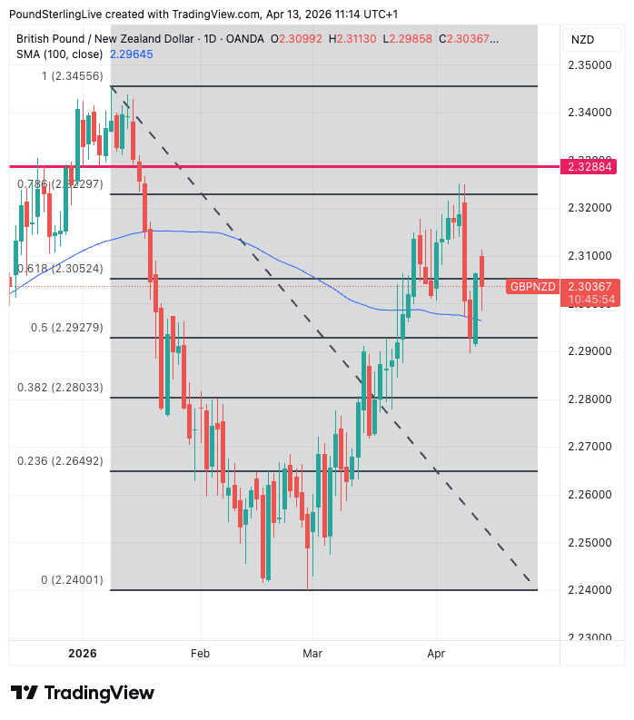 GBP/NZD opened the day at 2.3110 but has since retreated to 2.3030 amidst a NZD comeback.