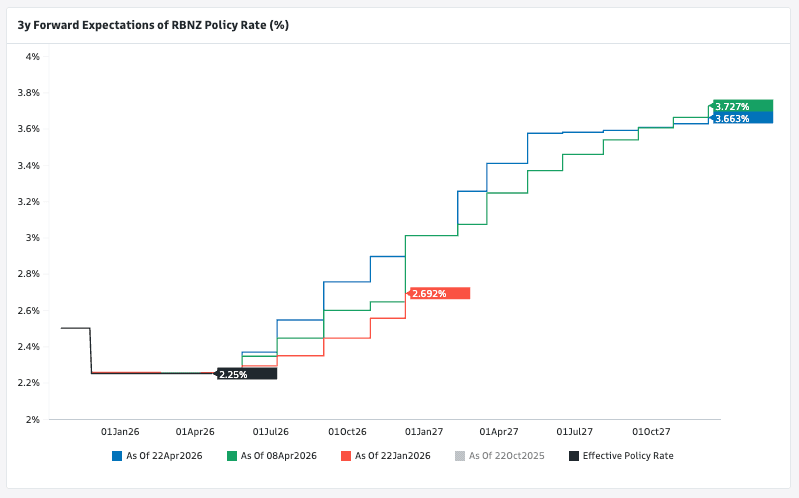 Entrenched inflation at that level leaves the RBNZ with limited room to do nothing; the incoming price impulse from elevated energy costs tied to the Middle East conflict adds further urgency to the case for tightening.
