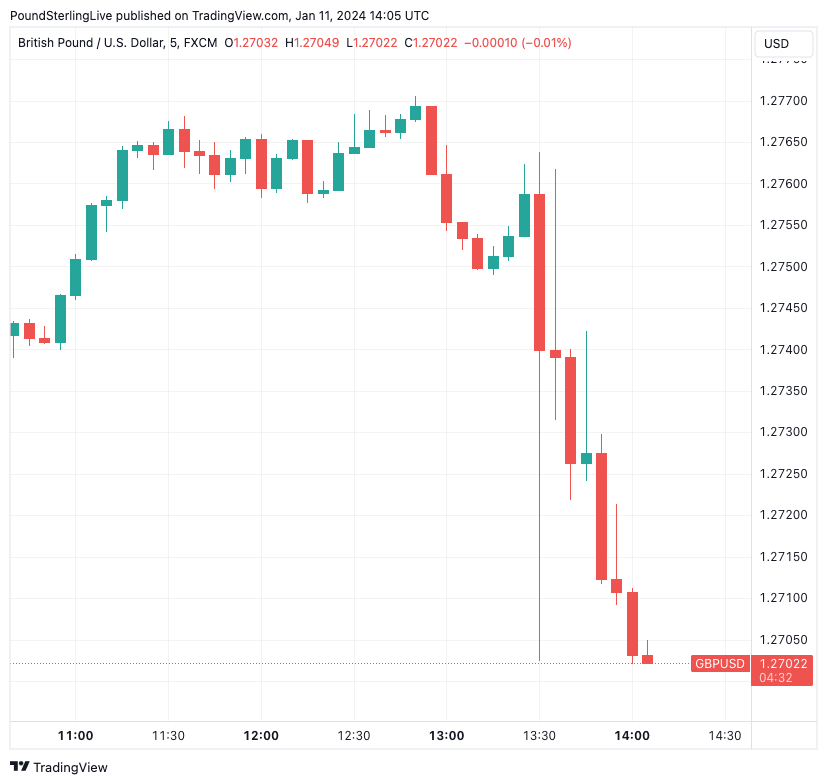 The Pound to Dollar exchange rate dipped to 1.2702 in the minutes following the release, a predictable response to the undershoot.