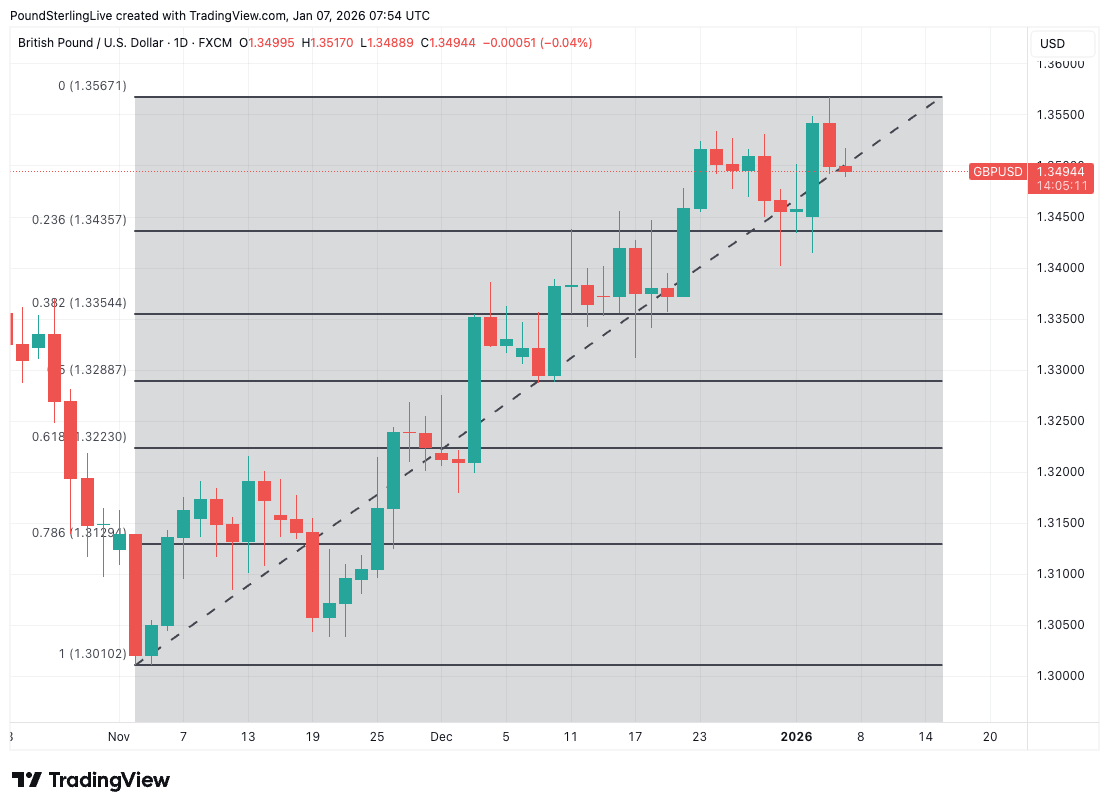 The pound to dollar exchange rate (GBP/USD) retreats to 1.3496 from new four-month highs set at 1.3567 on Tuesday.