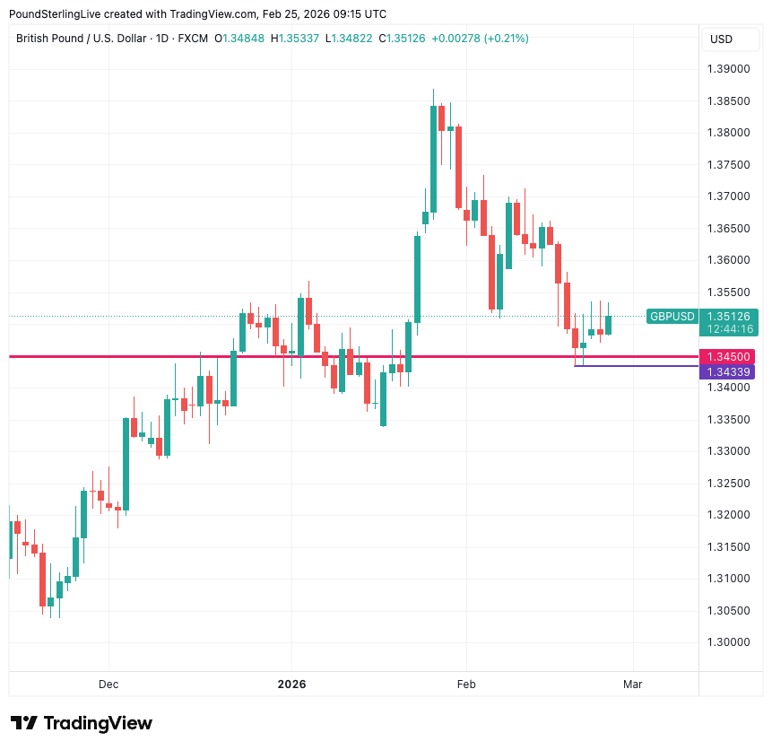 "Sterling has nudged back above $1.35, helped more by dollar weakness as markets lean into a bearish USD narrative, driven by rising policy uncertainty and a sense that global investors are trimming US exposure after years of outperformance. Although GBP/USD is down more than 2.5% from its January peak of $1.3868, the pair still sits in the top 15% of its three‑year range," says George Vessey, Lead FX and Macro Strategist at Convera.