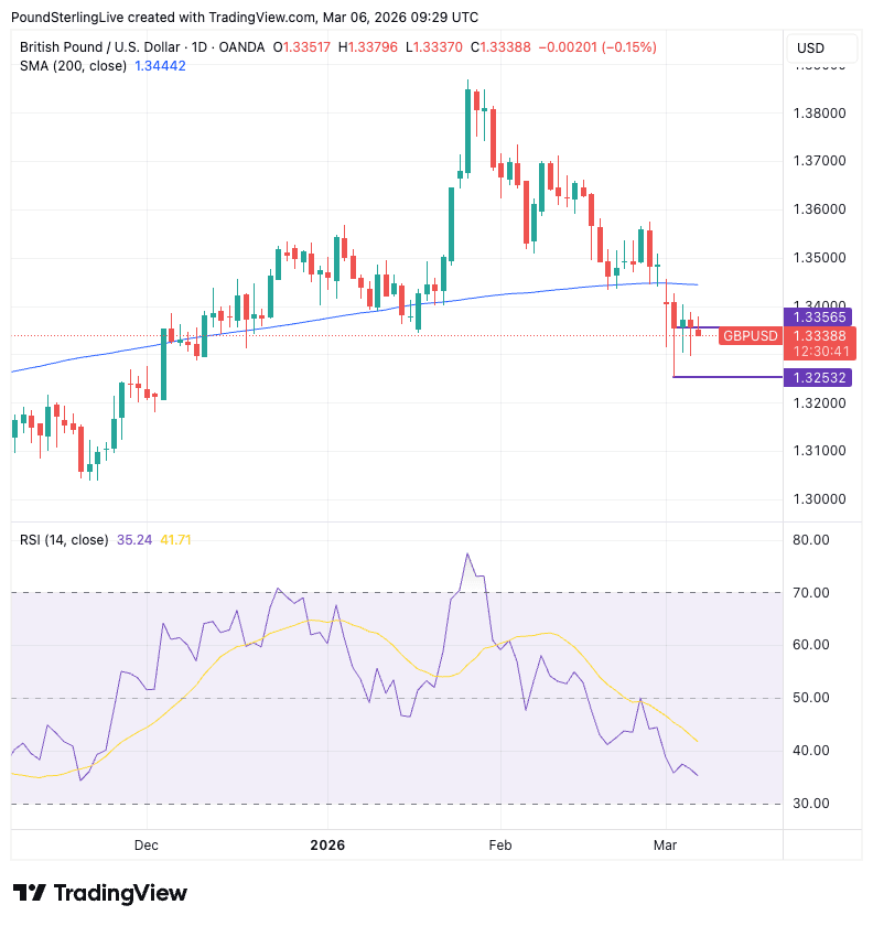 The pound is tentatively better supported against the dollar with GBP/USD finding a clear line of defence at 1.3356 as day six of the Iran conflict unrolls.