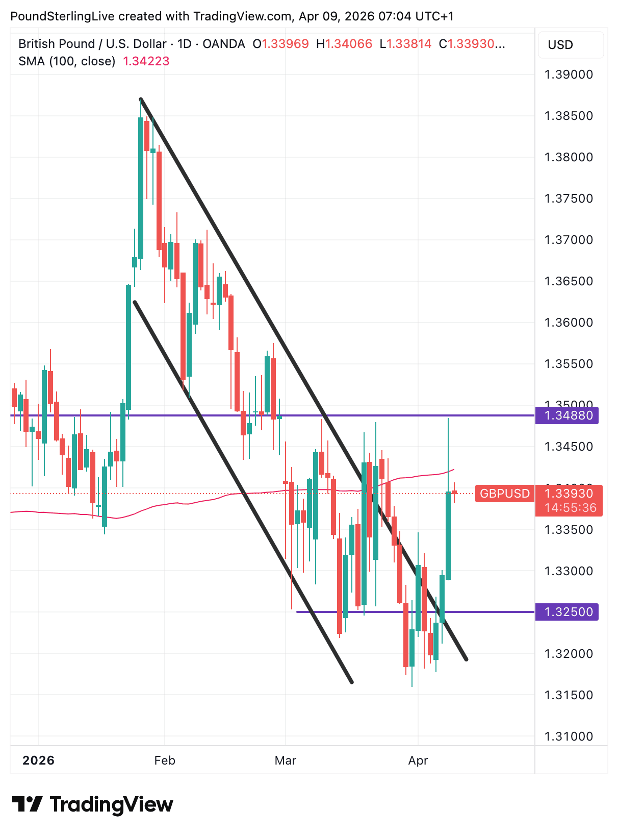Pound-dollar rallied by more than a per cent at one stage on Wednesday as markets welcomed a ceasefire between Iran and the U.S. and hoped it meant crude oil and natural gas would soon flow out of the Middle East.
