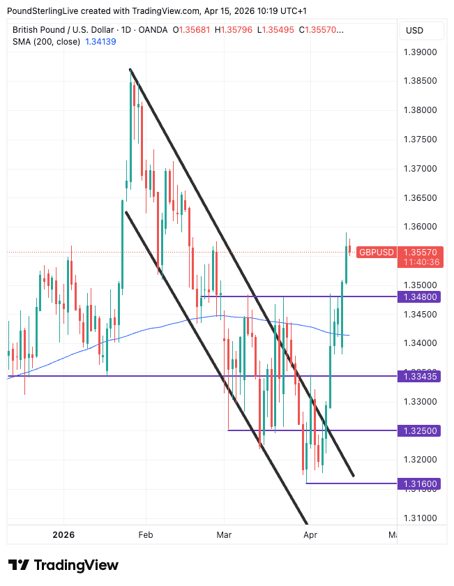The ceasefire trade stepped up a notch into the midweek session and helped propel the pound-dollar exchange rate to 1.3579, a level last seen in the days before the war in the Middle East started.